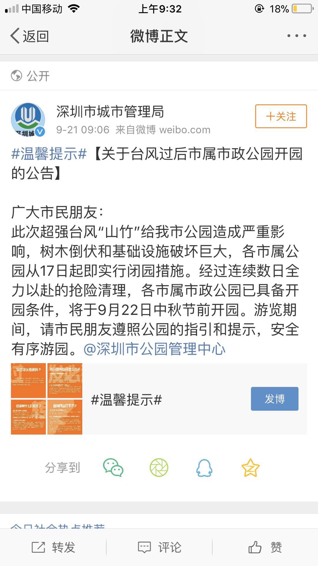 深圳新聞網(wǎng)訊 9月21日,市公園管理中心發(fā)布公告: