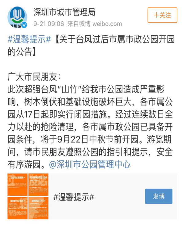 經(jīng)受過(guò)臺(tái)風(fēng)洗禮后的深圳市屬公園今天!?。〗K于都開(kāi)園啦!