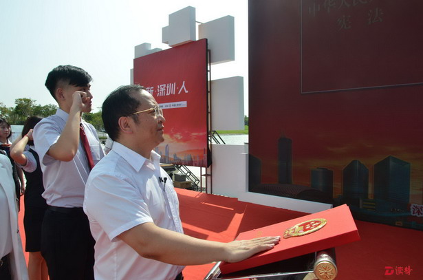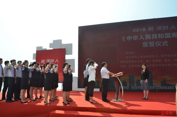 深圳新聞網(wǎng)訊 “我宣誓:忠于中華人民共和國憲法,維護(hù)憲法權(quán)威,履行憲法規(guī)定的公民基本義務(wù),做一名愛國、敬業(yè)、誠信、友善的守法市民,為深圳建設(shè)法治中國示范城市努力奮斗!”