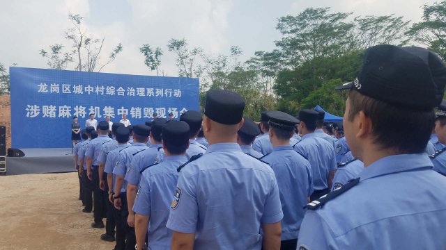 9月26日上午10時(shí)36分,在寶龍街道龍崗分局涉案物品管理中心,龍崗區(qū)舉行城中村綜合治理系列行動(dòng)之涉賭麻將機(jī)集中銷毀現(xiàn)場會,一次性集中銷毀兩千余臺涉賭麻將機(jī)。