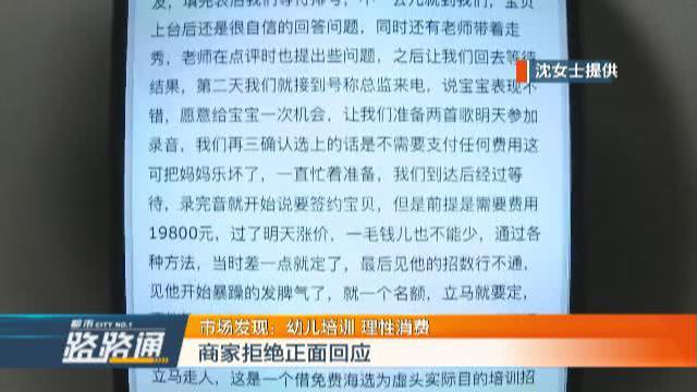 沈女士說(shuō),通過(guò)海選,她的兒子是成功的被選上了,隨后這培訓(xùn)機(jī)構(gòu)就開始讓她交報(bào)名費(fèi)了。報(bào)名費(fèi)一共是花了16800元??墒巧蚺吭诮煌赍X后,卻很快后悔了,因?yàn)樗X得消費(fèi)者對(duì)這家公司的評(píng)價(jià),并沒(méi)有他們宣傳得那么好。