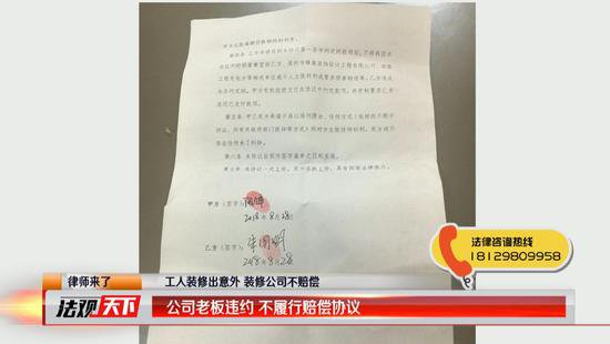 朱先生本以為雇傭雙方簽署了賠償協(xié)議就能如期得到賠償金,不料蜂巢裝飾有限公司的老板陽鋒卻違約不履行。無奈之下,朱先生只能再次找到我們,期望在記者和《法觀天下》法援律師的溝通下,蜂巢裝飾有限公司的老板陽鋒能把賠償金如約支付給他。隨后,記者與《法觀天下》嘉賓律師趙乙橋來到龍華區(qū)觀瀾街道金通盛大廈14樓的蜂巢裝飾有限公司,在這里我們見到了老板陽鋒。他表示,因為公司財務的種種原因,第一筆賠償款的支付有所延遲。但是在中秋節(jié)之前,一定會把款項支付給朱先生。