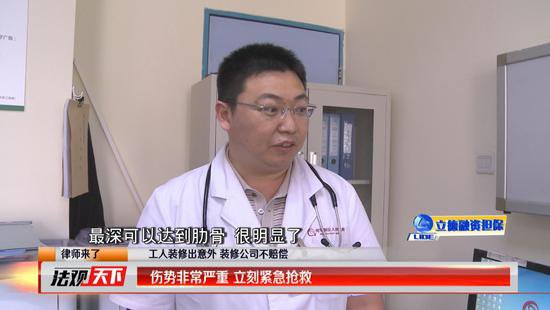 龍華區(qū)人民醫(yī)院表示,朱先生剛被送來的時候情況十分危急,胸前有一個很大的傷口,整個肌肉都裂開了,大概有20至30公分的長度。而且血流不止,隨時會危及生命。他立刻讓周圍的工作人員開通綠色搶救通道,第一時間將朱先生送往手術室進行搶救。經(jīng)過搶救,朱先生已經(jīng)脫離了生命危險,傷口也已經(jīng)愈合,并在恢復當中。但是縫合后的傷口看上去仍然觸目驚心。如今三個多月過去了,朱先生的身體仍然在恢復當中,是否會留有后遺癥仍是個未知數(shù)?!斗ㄓ^天下》嘉賓律師雷英表示,只要朱先生是在店鋪內(nèi)施工時受傷,那么店主和包工頭都應該承擔相應的賠償責任。