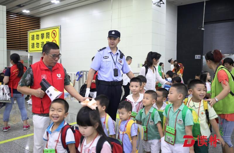 邊檢民警與深圳義工在福田口岸出境大廳悉心呵護(hù)跨境學(xué)童安全快捷通關(guān)。黃俊生攝