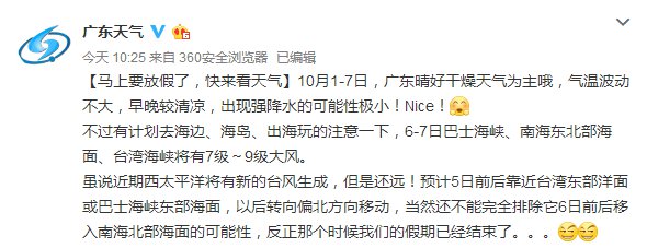 廣東國慶期間天氣不錯(cuò)!
