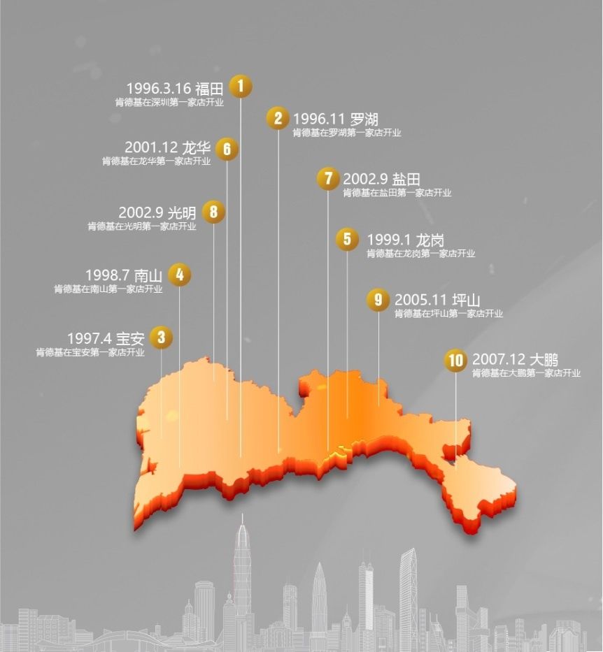 2007年,是深圳的大年份,也是肯德基的大年份。2007年,深圳人均GDP達(dá)到10684美元,首次超過1萬(wàn)美元??系禄拈_店數(shù)量也在那一年突破了100家,達(dá)到108家。同時(shí),肯德基完成了對(duì)現(xiàn)在深圳十區(qū)的開店布局。
