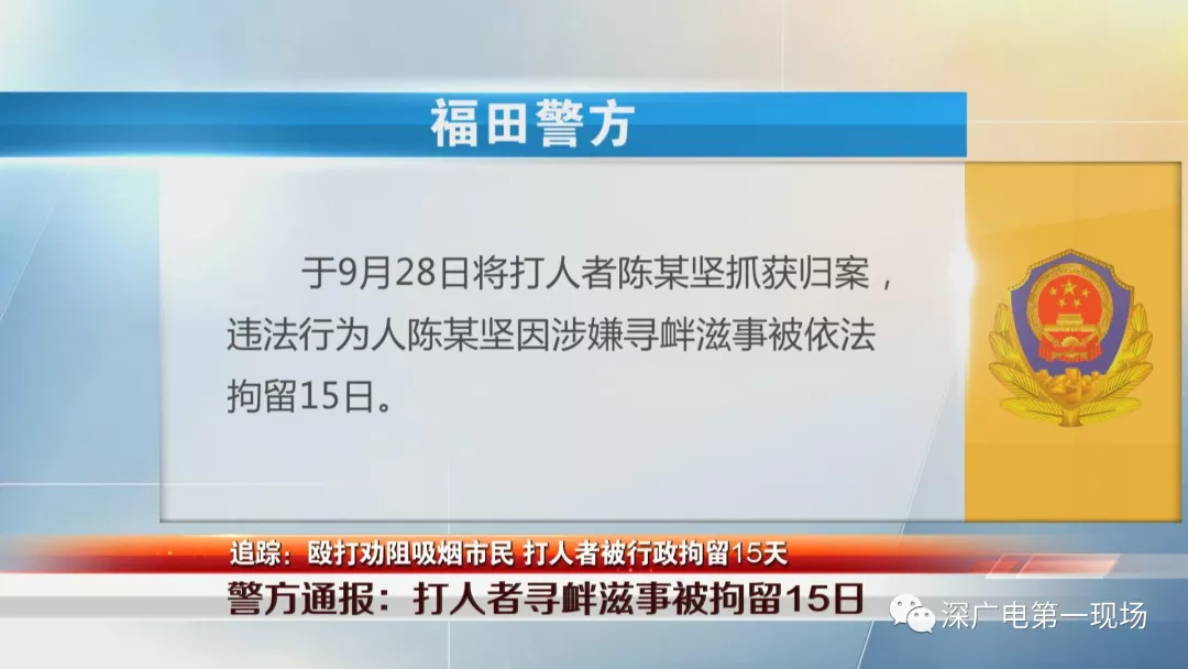 深圳一男子餐廳內(nèi)勸阻吸煙反被毆打,打人者的處罰來了!