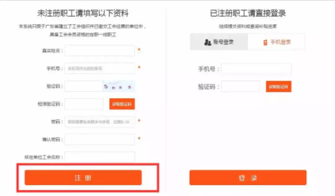 1.新注冊職工必須填寫完整信息--點擊提交資料--完成注冊,系統(tǒng)自動跳轉(zhuǎn)領(lǐng)取補貼頁面;