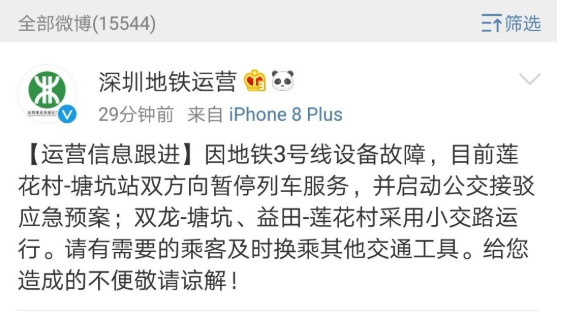 9日上午,深圳地鐵3號線發(fā)生故障致列車停運(yùn)