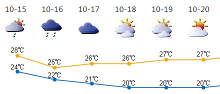 預計15日有小陣雨;16日受弱冷空氣和弱切變線影響,我市陰天為主,有小雨到中雨,局部大雨,偶爾伴有零散雷暴,氣溫有所下降,最高氣溫25 ℃左右;17日有小雨;18-20日多云到晴天,早晚清涼。