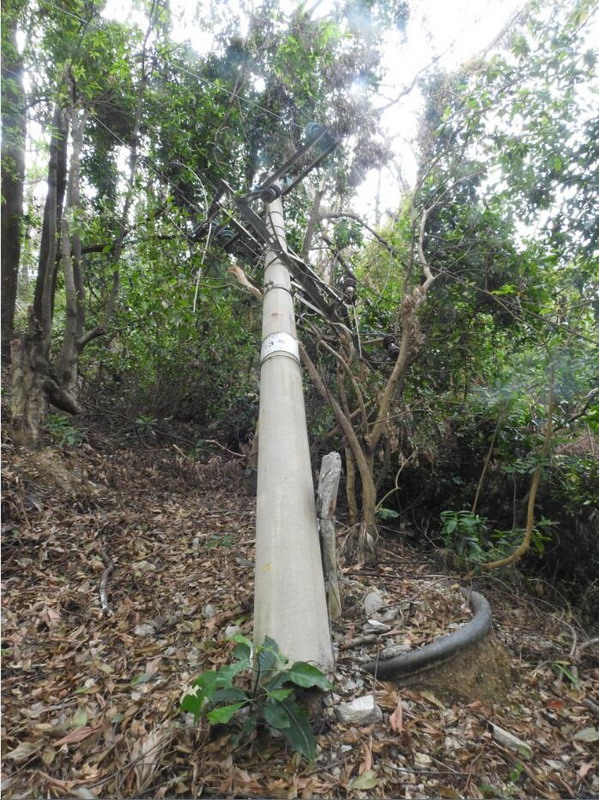 斜躺在樹(shù)叢中的電線桿 深圳論壇網(wǎng)友“szwtyh”攝