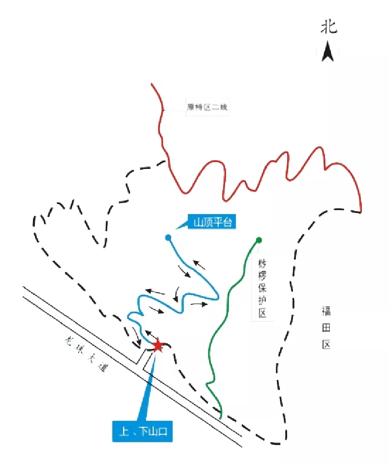 ▲重陽(yáng)節(jié)大南山登山路線示意圖
