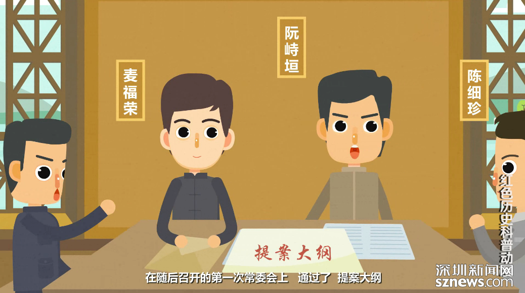 該動(dòng)畫片圍繞中共寶安縣第一次黨員代表大會(huì)作了重點(diǎn)講述。1928年2月23日,根據(jù)廣東省委的指示,中共寶安縣委在燕川素白陳公祠召開第一次黨員代表大會(huì)。大會(huì)認(rèn)真總結(jié)廣州起義失敗的原因和教訓(xùn),克服悲觀主義和盲動(dòng)主義,建立新的領(lǐng)導(dǎo)核心,選舉產(chǎn)生了中共寶安縣第三屆委員會(huì)。在隨后的召開的第一次常委會(huì)上,通過(guò)了《提案大綱》,決定重新整頓各級(jí)黨組織,進(jìn)一步發(fā)展黨員;加強(qiáng)宣傳工作,創(chuàng)辦農(nóng)民學(xué)校、夜校、翻印《紅旗》、《布爾什維克》等黨內(nèi)刊物及各種宣傳品。