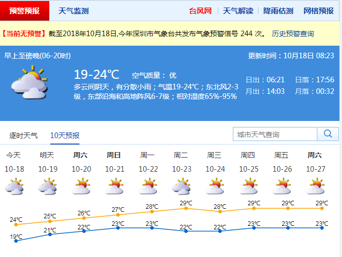 市內(nèi)吹2-3級(jí)東北風(fēng),沿海和高地偏東陣風(fēng)6-7級(jí)。大部分地區(qū)能見(jiàn)度較好,在8-15公里。雨時(shí)能見(jiàn)度較低,出行注意安全。最小相對(duì)濕度在80%左右,最大相對(duì)濕度在90%左右。