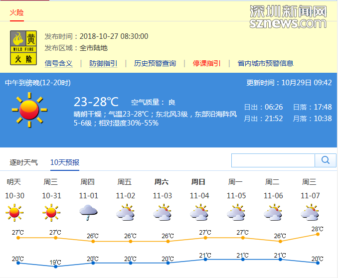 深圳新聞網(wǎng)10月29日訊(記者 陳婕)29日,深圳市最高氣溫直逼30度,與此對應的是,今日最低相對濕度24%,比今日歷史最低值25%(1978、1991年)還要干,真叫一個晴朗干燥。