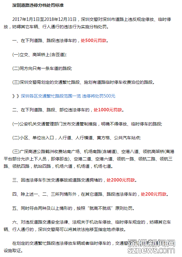 記者查閱《深圳經(jīng)濟(jì)特區(qū)道路交通安全違法行為處罰條例》發(fā)現(xiàn),深圳交警部門可對違法停車的個(gè)人處以最高2000元的罰款。