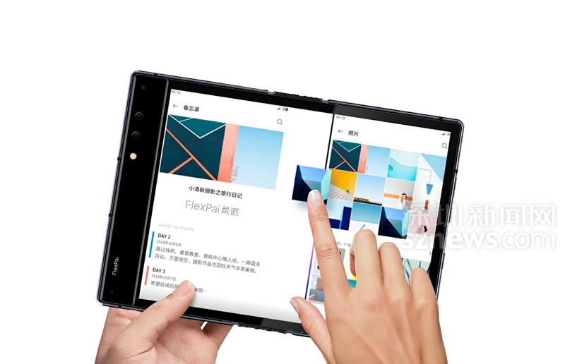 FlexPai既可以折疊成為智能手機,也可以展開成為平板電腦,方便用戶隨時隨地大屏看視頻、展示PPT,真正意義上解決了高清大屏和便攜性這個長期被認為難以調和的矛盾。