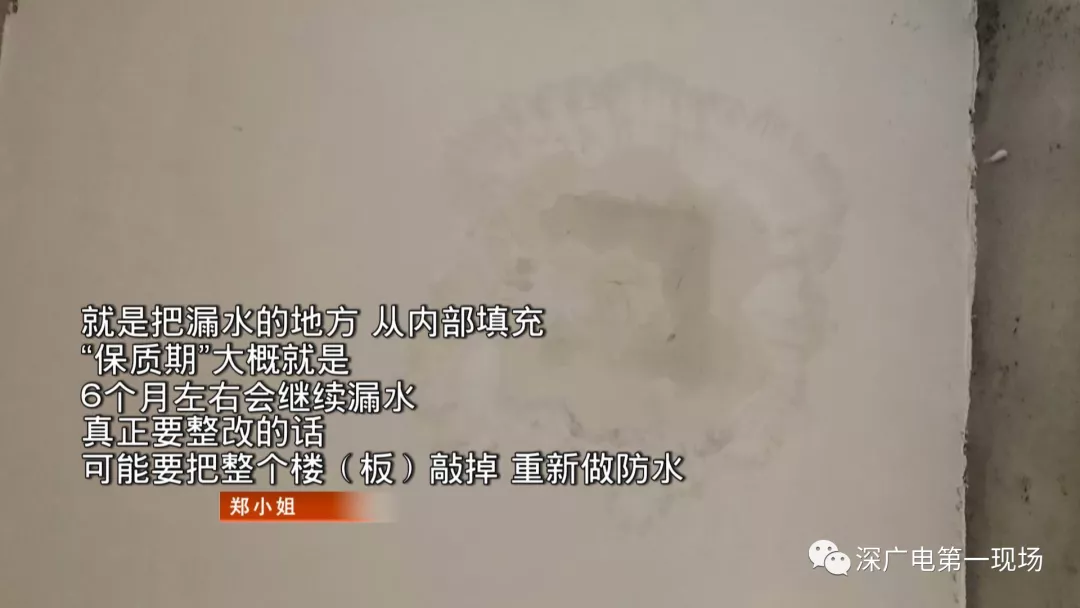 鄭小姐說,自己的擔心并非多余。因為在與開發(fā)商工程部的人交涉中,鄭小姐發(fā)現(xiàn),今年6月,她的房屋就因滲水做過一次修復。