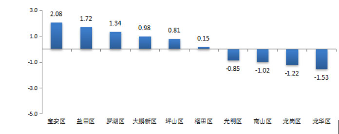 南山區(qū)城市交通文明進步指數(shù)為-1.02%,全市排名第八。從各分項進步指數(shù)來看,守法率進步指數(shù)為-1.84%,市民感受度進步指數(shù)為1.81%,交通設(shè)施完善進步指數(shù)為0.16%,人行道無障礙進步指數(shù)為1.11%。
