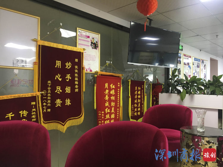 門店內(nèi),世紀(jì)佳緣客戶送來(lái)的錦旗。