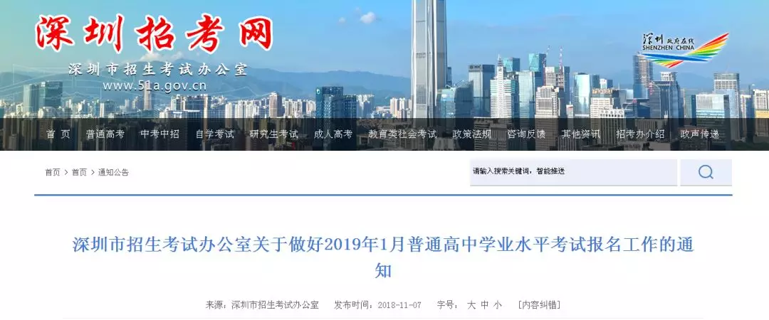 深圳新聞網(wǎng)11月12日訊(記者 劉婷)近日,深圳市招生考試辦公室發(fā)布了《深圳市招生考試辦公室關(guān)于做好2019年1月普通高中學(xué)業(yè)水平考試報名工作的通知》,明確要求:報名時間為2018年11月12日至17日,其中12日至14日為網(wǎng)上預(yù)報名時間,15日至17日為報名點(diǎn)現(xiàn)場報名確認(rèn)時間。