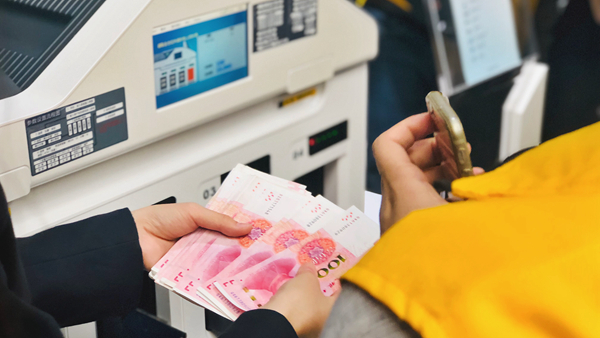 廣電運通講解員正展示著智能清分機的操作。