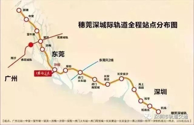 據(jù)了解,穗莞深城際線自廣深鐵路新塘站引出,跨越廣深鐵路后經(jīng)由廣州、東莞、深圳一路向南敷設,止于深圳機場站,并預留南延至前海條件,正線總長約76.1公里。穗莞深城際鐵路是珠三角城際軌道交通網(wǎng)主軸,全線設站15座,其中深圳段17公里,設有海上田園、和平、機場北、機場4站。