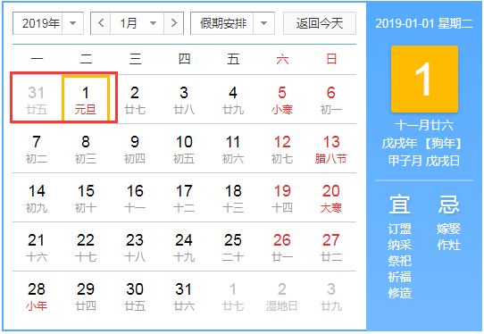 2019年元旦放假攻略: