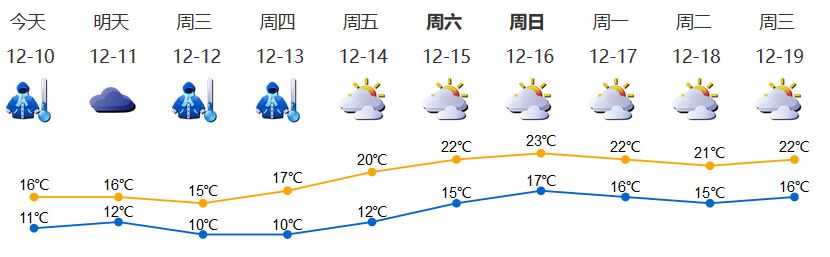 我市今天今天陰天間多云,有零星小雨;氣溫11-16℃,北部及山地再低1℃左右;北風(fēng)3級(jí),陣風(fēng)6級(jí);相對(duì)濕度75%-95%。