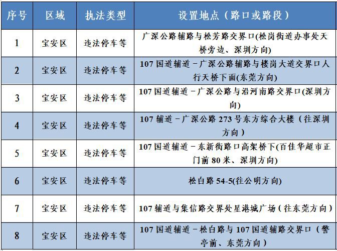 深圳新聞網(wǎng)12月10日訊(記者 何暢)據(jù)“深圳交警”微信公眾號(hào)消息,深圳56套“電子警察”新上線,其中46套專門查處違法停車,4套用于查處泥頭車違反禁行限行規(guī)定,6套用于查處沖紅燈、逆行、進(jìn)入導(dǎo)向車道變更車道等違法行為。56套“電子警察”具體分布位置如下: