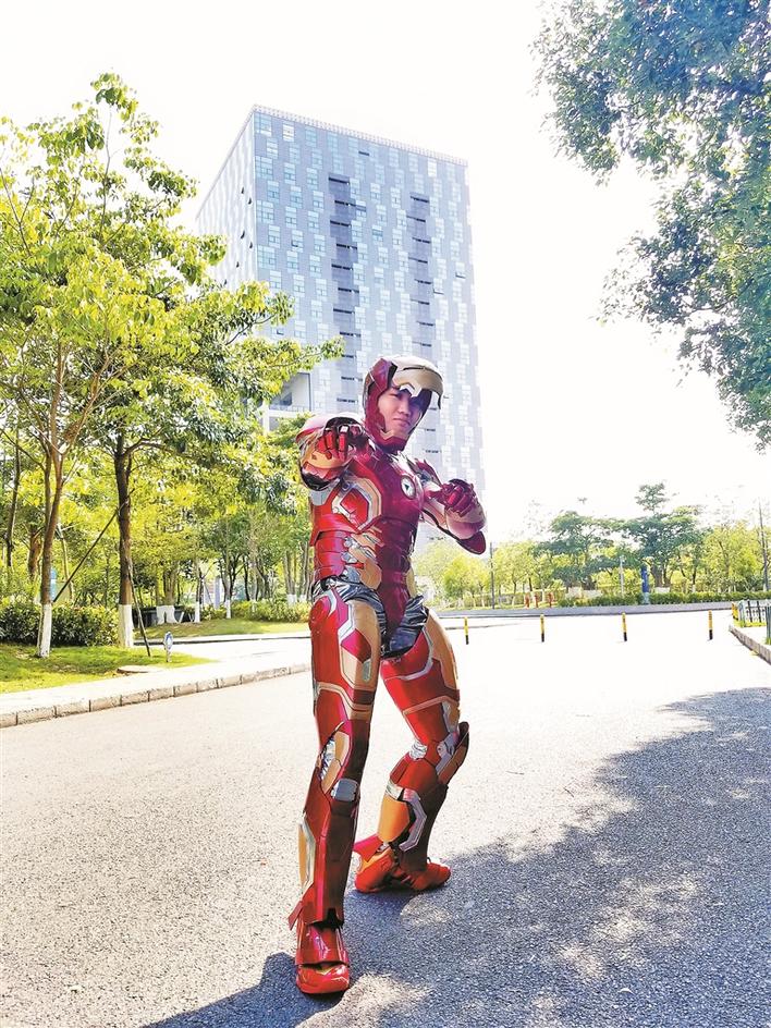 科技創(chuàng)業(yè)“深二代”張俊強和他的鋼鐵俠鎧甲。