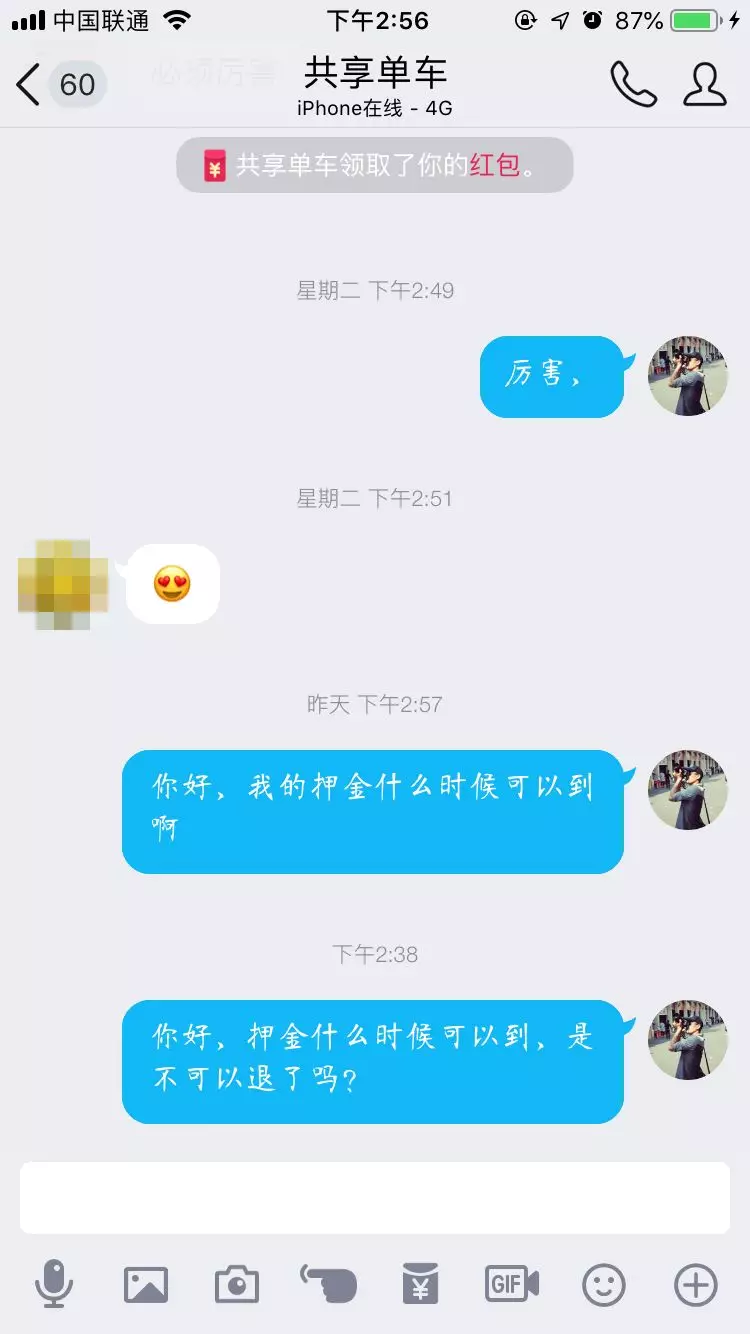 隨后,該用戶讓黃先生添加了自己的QQ。黃先生向該用戶QQ轉(zhuǎn)賬30元,并提供了自己的身份證后四位數(shù)、手機(jī)號(hào)、姓名;該用戶承諾退還的押金1天可以到賬。12月12日,黃先生遲遲沒(méi)有等到押金,QQ上再聯(lián)系對(duì)方時(shí),卻一直沒(méi)有回音。