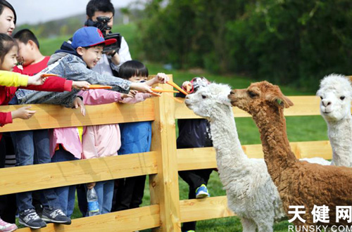 三寰牧場(chǎng)孩子與羊駝嬉戲玩耍
