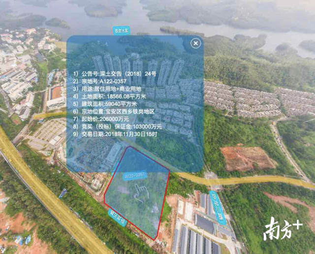 記者查閱發(fā)現(xiàn),該宗地塊周邊有別墅群、高層樓盤及待開發(fā)的居住用地,臨近鐵崗水庫,不遠(yuǎn)處有寶安公園。