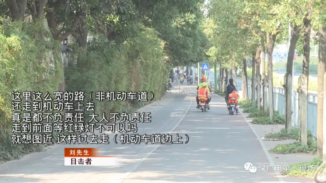 今天上午記者來(lái)到了事發(fā)現(xiàn)場(chǎng),寶安大道和新安六路的交匯口。在現(xiàn)場(chǎng),電動(dòng)車違規(guī)現(xiàn)象嚴(yán)重:走機(jī)動(dòng)車道、不戴頭盔、違規(guī)載人、不等紅燈的現(xiàn)象比比皆是,甚至出現(xiàn)了逆行的情況。雖然設(shè)置了非機(jī)動(dòng)車道,但使用者寥寥無(wú)幾。
