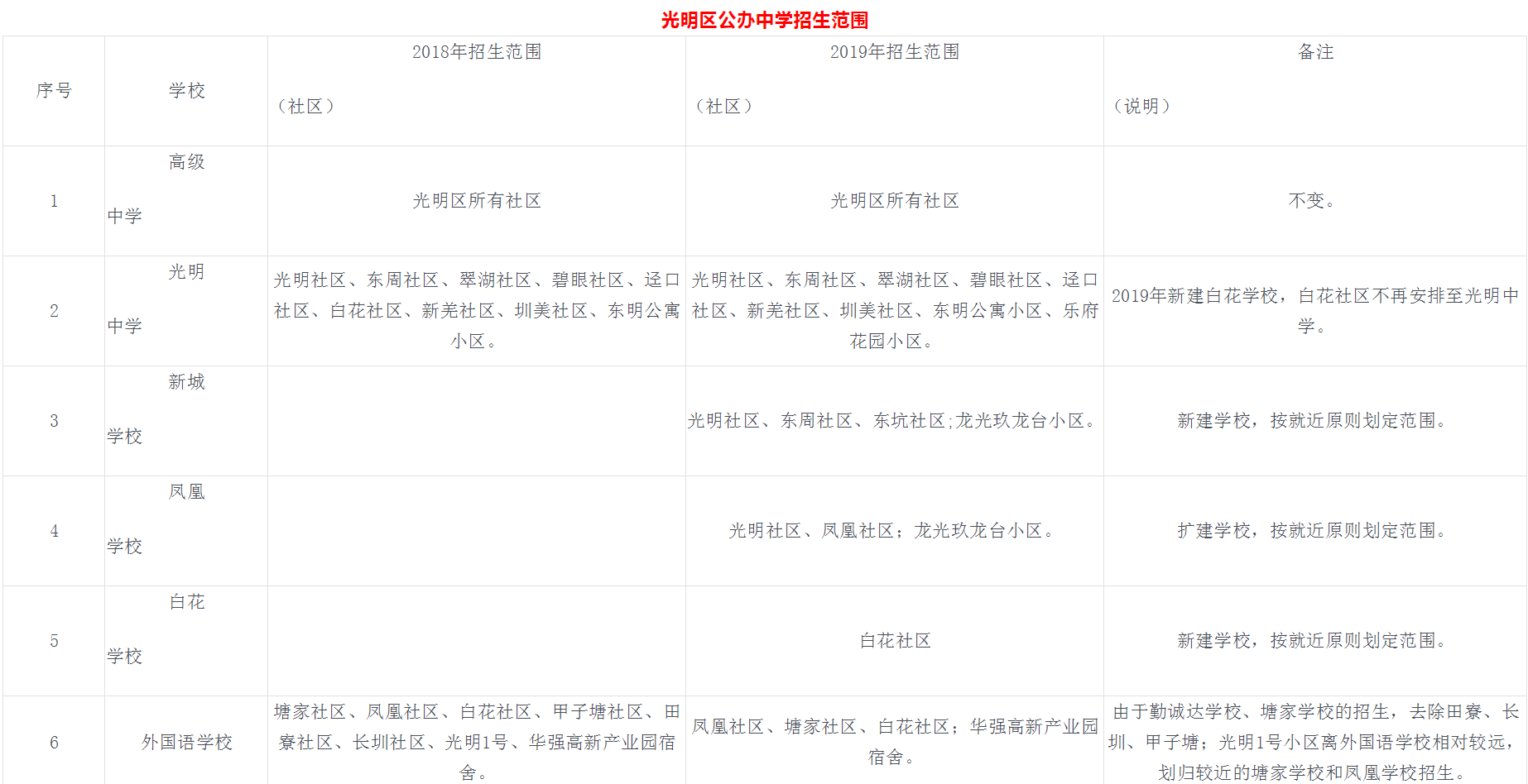 光明區(qū)公布2019年公辦小學(xué)、初中招生片區(qū)和學(xué)位積分方案啦