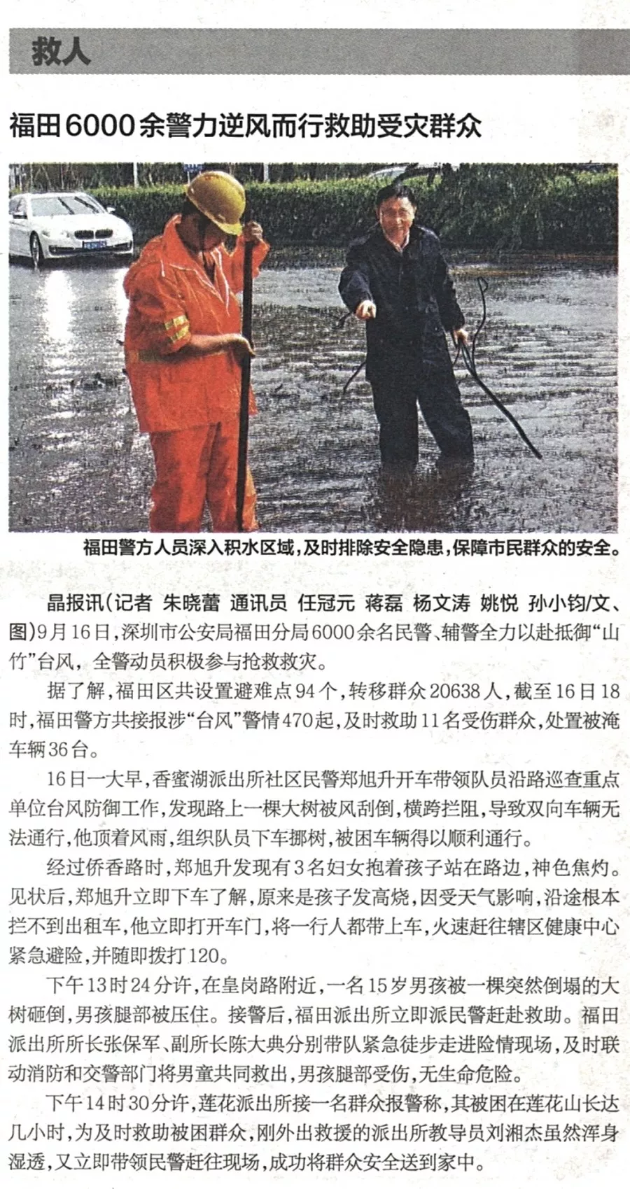 ★★福田警方啟動一級勤務(wù),全力投入防御超強(qiáng)臺風(fēng)“山竹”行動中。福田警方共接報(bào)涉“臺風(fēng)”警情470起,及時救助11名受傷群眾,轉(zhuǎn)移群眾20638人,處置被淹車輛36臺,確保了轄區(qū)治安穩(wěn)定。