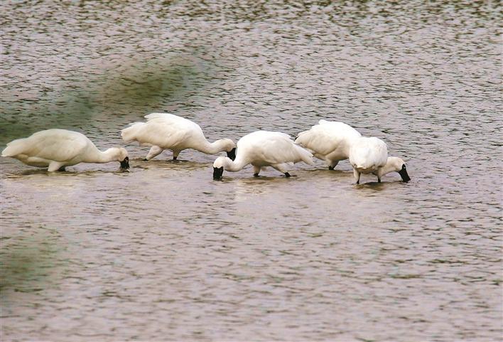 有黑臉琵鷺也有普通鸕鶿