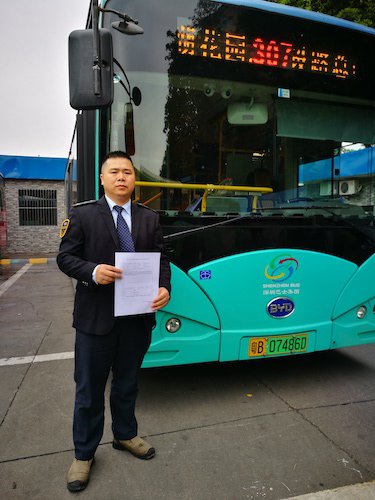 ▲胡師傅拿著深圳市交委轉(zhuǎn)來的表揚(yáng)單。