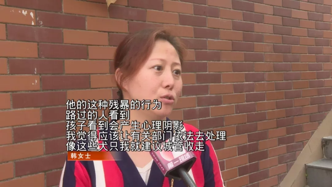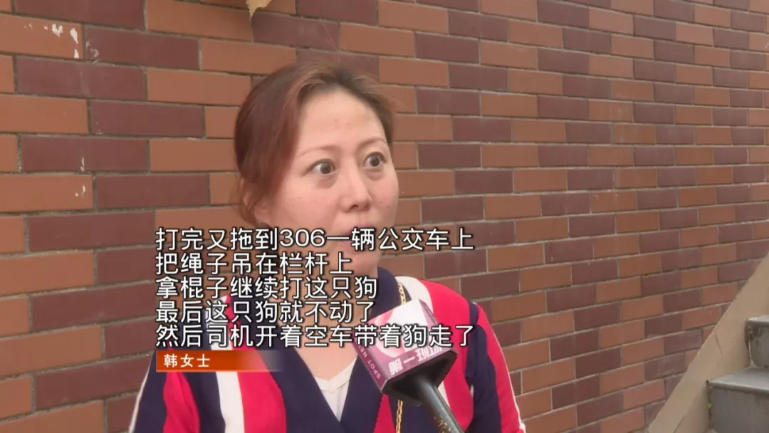不過,當韓女士向工作人員提出要查看狗證時,工作人員改口說這是一條流浪狗,咬了人才打它,并用繩子拴住狗繼續(xù)打,最后把它拖上了一輛公交車。