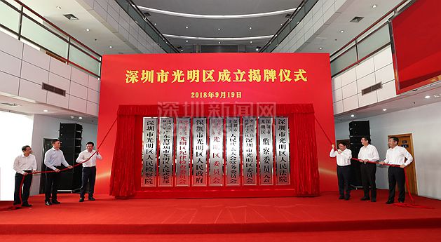 2018年9月19日,光明區(qū)正式揭牌成立。這是繼2016年10月,國務院批復同意設立龍華、坪山區(qū)之后,深圳又一個獲批的行政區(qū),也是深圳第九個行政區(qū)。
