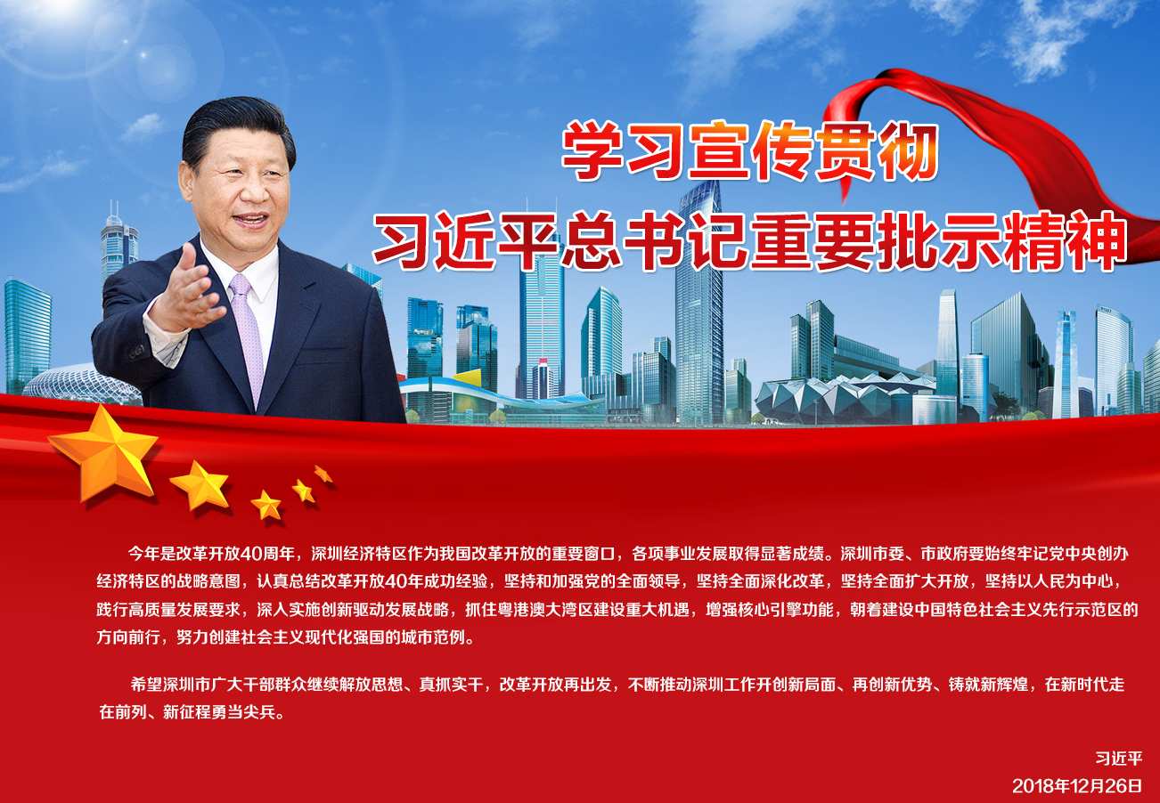 2018年12月26日,習近平總書記對深圳工作作出重要批示。全文如下: