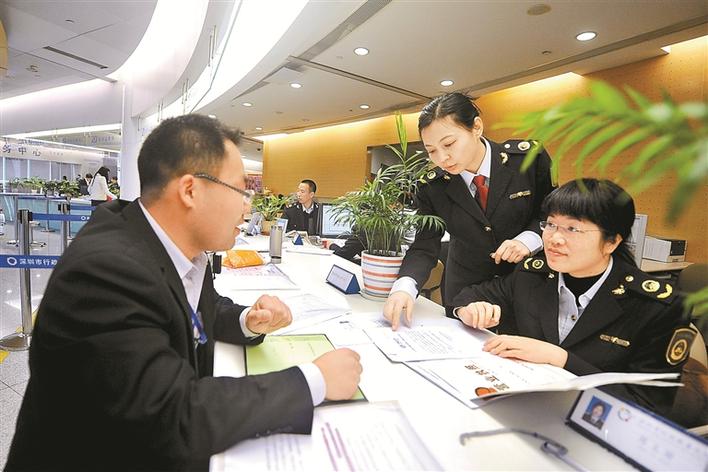 深圳在商事登記改革中推出“30證合一”信息共享模式,市民辦事更加便利。圖為市行政服務大廳工作人員熱情為市民服務。深圳特區(qū)報記者何龍攝