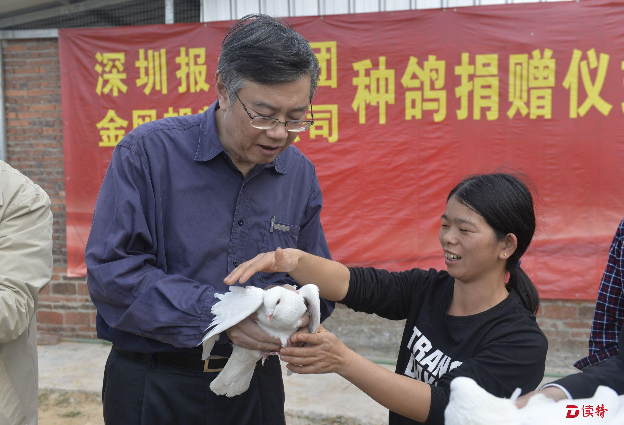 根據(jù)報(bào)業(yè)集團(tuán)“因戶制宜一戶一策”“一個(gè)黨支部結(jié)對一戶貧困戶”的安排,鐘仿明選擇養(yǎng)鴿脫貧,兩年多來,集團(tuán)金風(fēng)帆物業(yè)公司共計(jì)為他送來四批480對種鴿,還請來深圳光明農(nóng)場的技術(shù)員,對他進(jìn)行技術(shù)培訓(xùn)?!?80對種鴿全部成活!”1月20日下午,看到親自來送種鴿的陳寅等報(bào)業(yè)集團(tuán)領(lǐng)導(dǎo),鐘仿明拿出一面錦旗,非常激動地說:“感謝黨的好政策,感謝深圳報(bào)業(yè)集團(tuán)的真心幫扶!”
