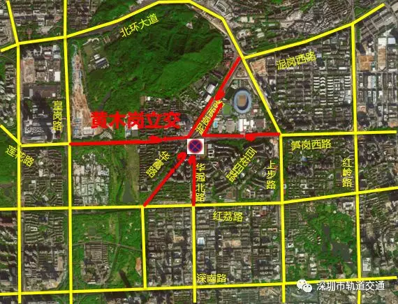 (2)原經(jīng)華富路北行在黃木崗立交左轉(zhuǎn)到達(dá)的交通調(diào)整為:紅荔路-皇崗路-筍崗西路-梅崗路。