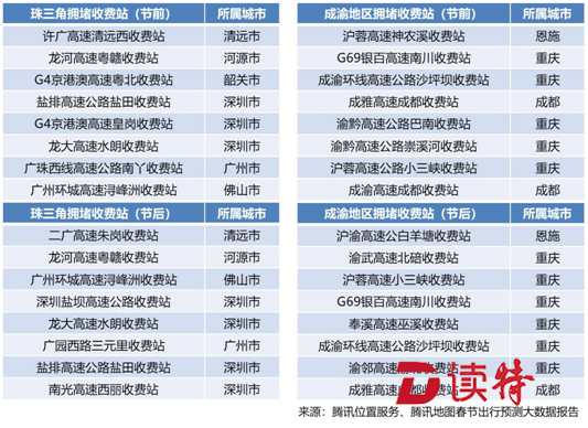 在珠三角地區(qū),擁堵收費站全部位于廣東省內(nèi),集中分布在廣州、深圳等中心城市周邊,及通往湖南、江西的省界區(qū)域,擁堵時間與長三角相同。長深高速東江大橋至泰美服務(wù)區(qū)、莞佛高速坦尾立交至虎門大橋,預(yù)計將成為節(jié)前、節(jié)后最擁堵的高速路段。