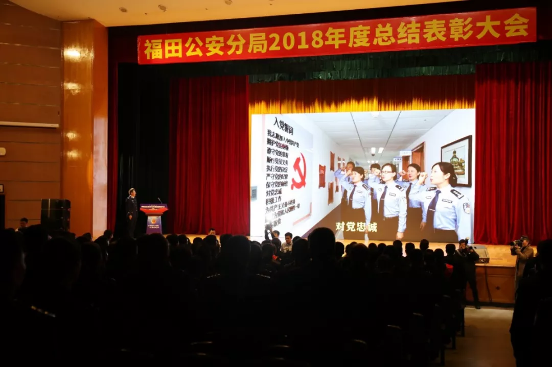 1月24日,福田公安分局舉行2018年總結(jié)表彰大會(huì),會(huì)議對(duì)2018年度15個(gè)先進(jìn)集體、54名民警及14名優(yōu)秀警嫂進(jìn)行了表彰。區(qū)委書記呂玉印,市公安局黨委副書記、常務(wù)副局長周兆翔,區(qū)委副書記、區(qū)長高圣元,區(qū)人大常委會(huì)主任楊湘寧,區(qū)政協(xié)主席李生偉,區(qū)委副書記黃曉鵬,區(qū)委常委、統(tǒng)戰(zhàn)部長劉俊琳,副區(qū)長、公安分局局長段廷杰等有關(guān)領(lǐng)導(dǎo)參加了會(huì)議。