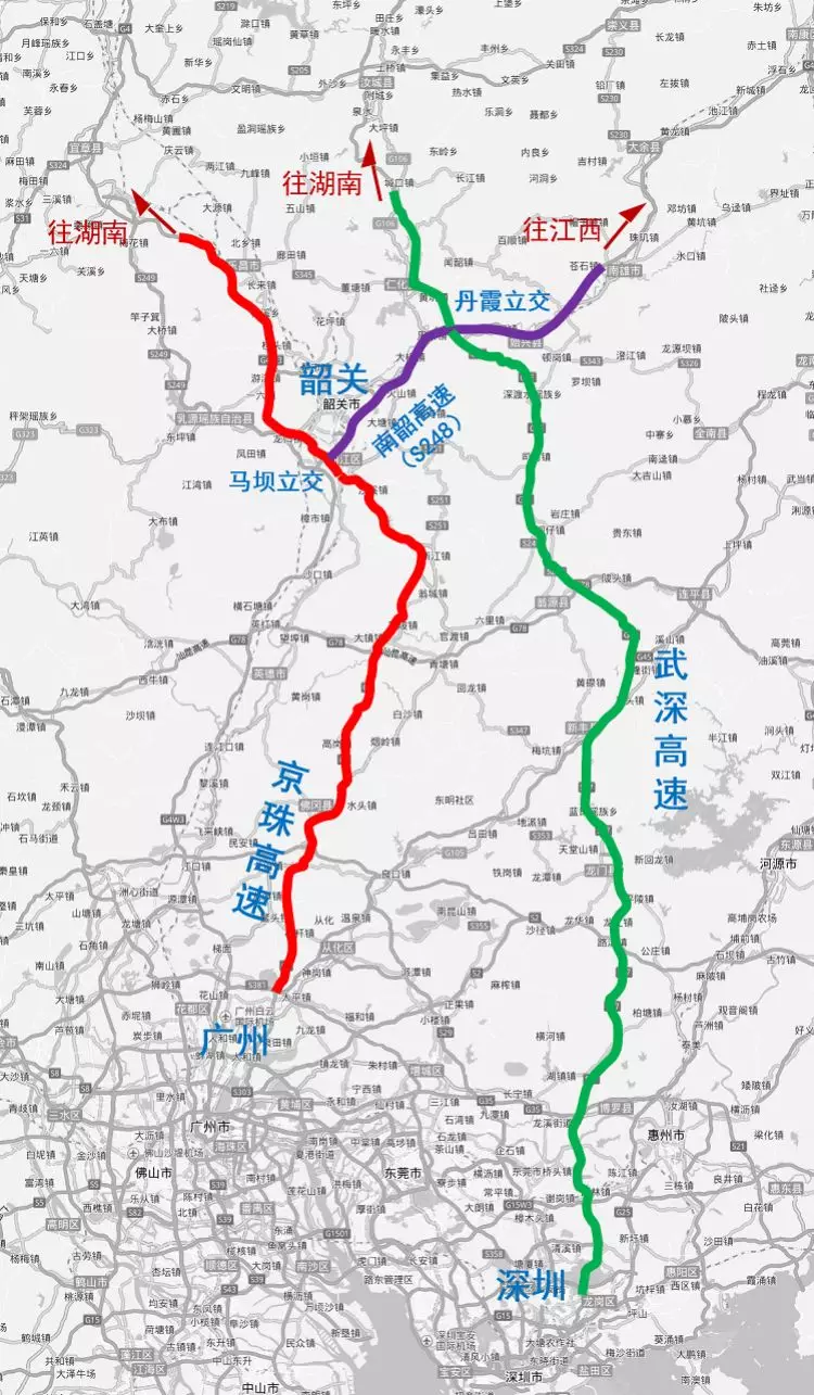 建議3:沿G4京港澳高速北上后,在韶關(guān)馬壩樞紐轉(zhuǎn)南韶高速往東,至丹霞樞紐進(jìn)0入仁新高速,經(jīng)九龍江省際收費(fèi)站進(jìn)入湖南,沿S11平汝高速北上。該線路是前往長株潭城市群、武漢、南昌等地的最佳路徑。