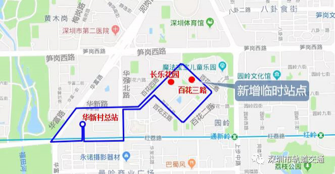 增設(shè)14個(gè)臨時(shí)??奎c(diǎn)(花卉世界臨時(shí)站、華新村臨時(shí)站、群星廣場(chǎng)臨時(shí)站、計(jì)生中心臨時(shí)站、建設(shè)集團(tuán)臨時(shí)站、體工宿舍、華富北屋村、長(zhǎng)樂花園、百花三路)。