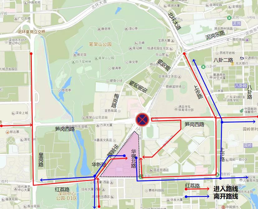 車(chē)行交通調(diào)整為:紅荔路 -上步路 -筍崗西路;上步路 -筍崗西路。